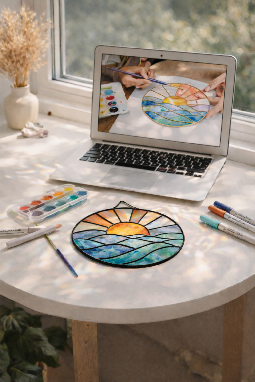 Create modern acrylic suncatchers at home with templates, blank kits, or full glass-paint kits—each designed with clear instructions to guide you through the process.
